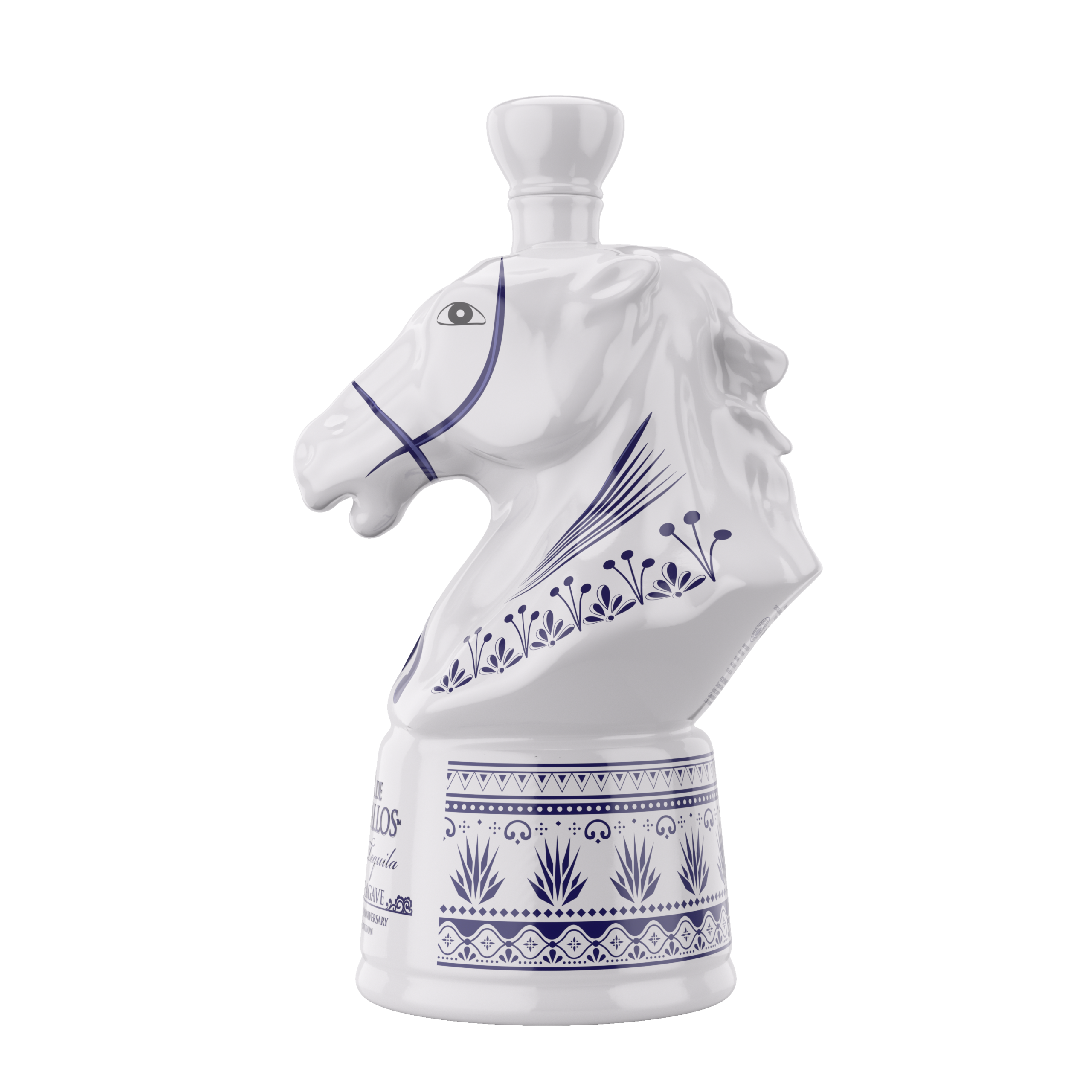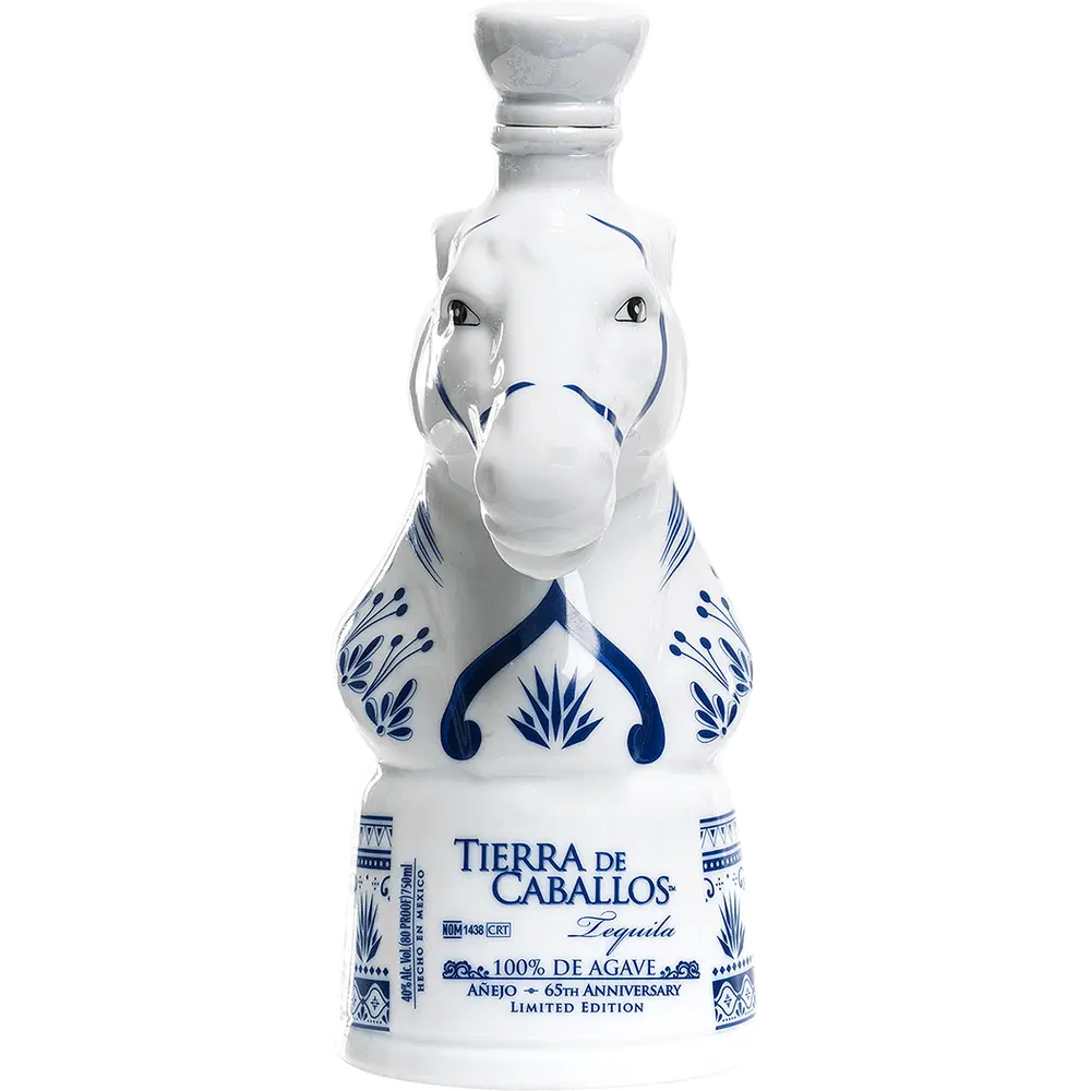 描かれた力強い馬のボトルは、
